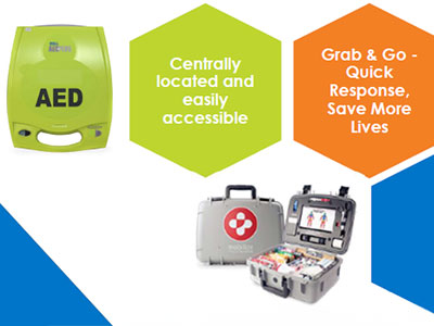 The AHA’s Heartsaver First Aid CPR AED course trains participants to provide first aid, CPR, and use an automated external defibrillator (AED) in a safe, timely, and effective manner. This program reflects science and education from the American Heart Association Guidelines Update for CPR and Emergency Cardiovascular Care (ECC).